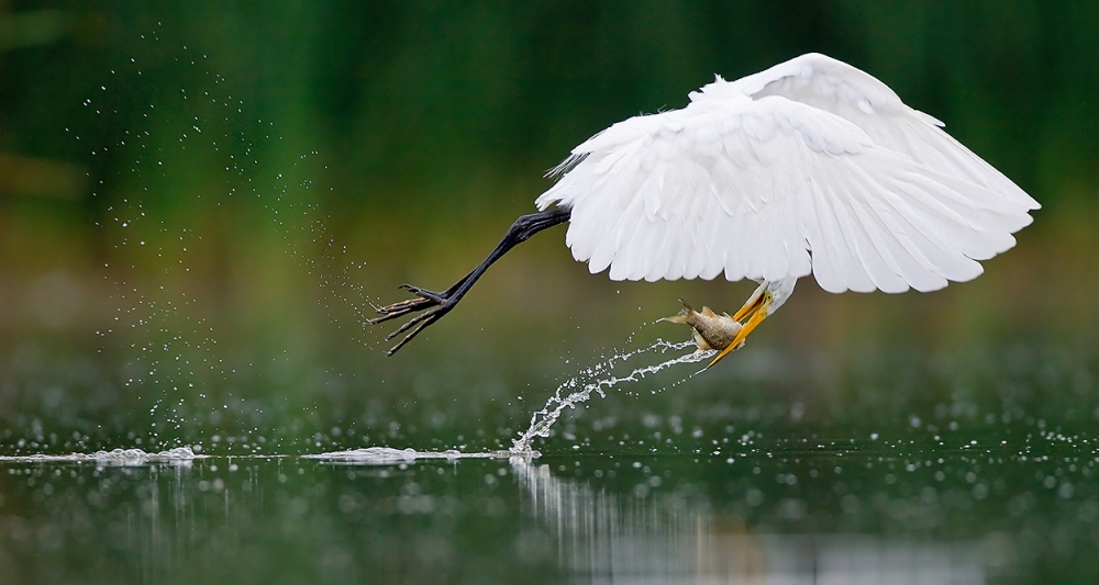 "Great Egret just at the right second" by Christopher Schlaf.