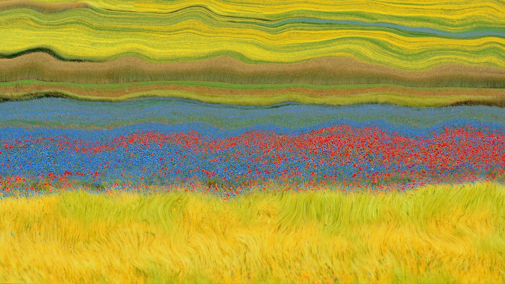 Edoardo Gobattoni and Ursula Abresch have both opted for a lively composition with wavy horizontal lines, each with its own colors, shapes and patterns. But here the similarity between the two images ends. They are after all poles apart.