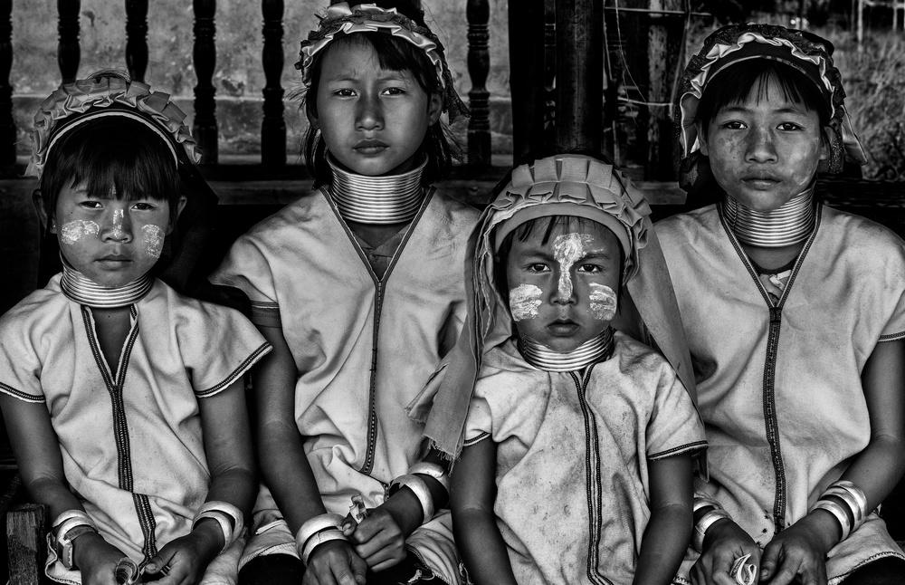 "Four padaung girls (Myanmar)