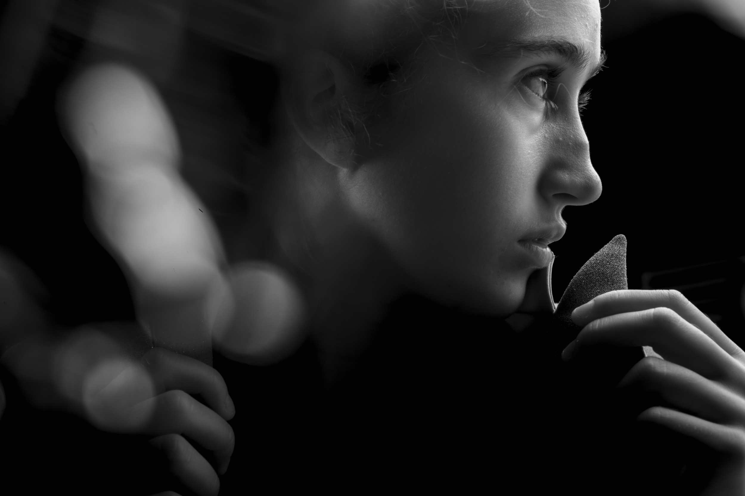 The model must feel comfortable. I talk to the model a lot before and during the shoot.  The choice of music is important. I always play what she wants to hear, according to the style of the shoot. For a portrait of a young girl, for example, she asked me to play Coldplay. We started with that, but then it turned into a Mozart Requiem.